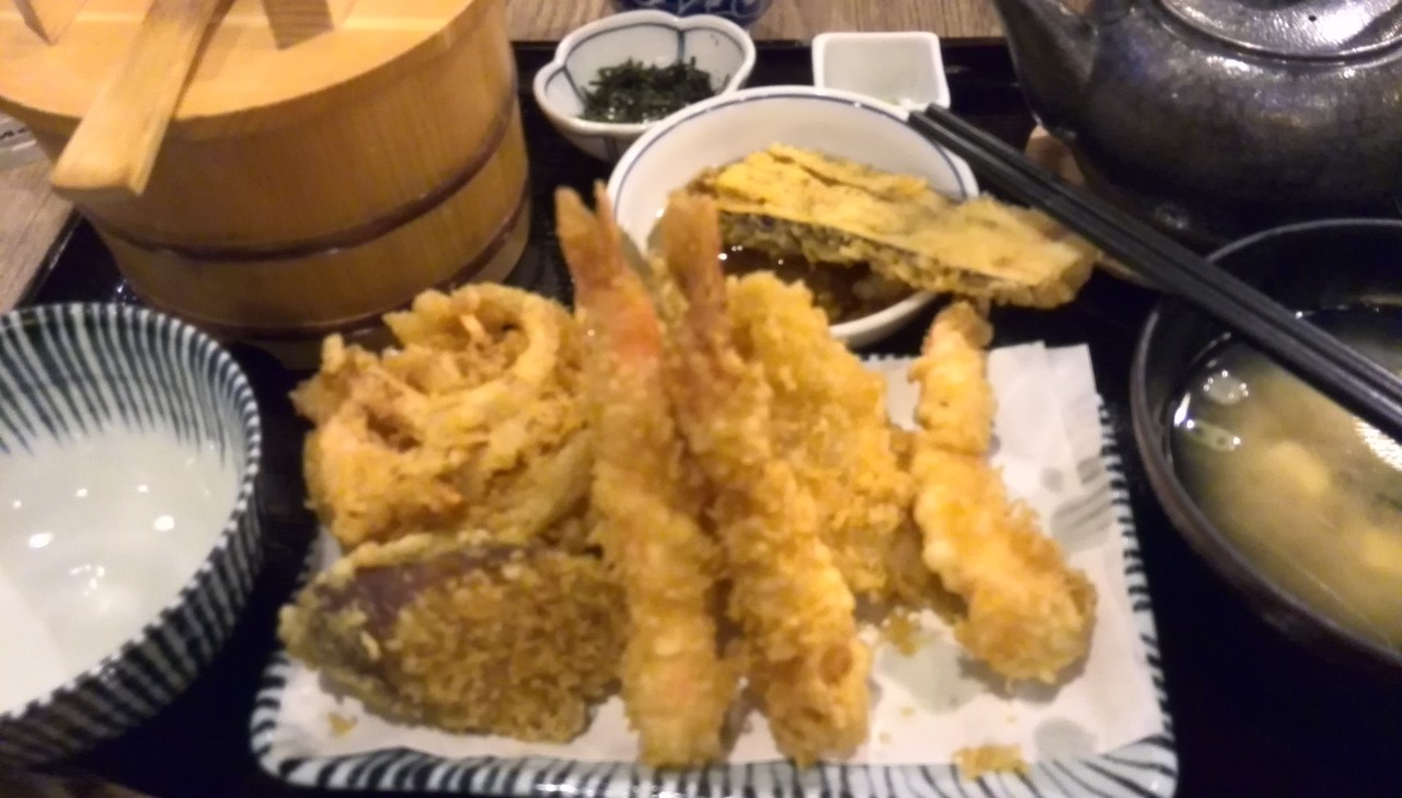 金曜日の夜に行きました。友人が予約してくれたのですが、前日に電話した時に18時は無理で、空いたら電話がかかってくるという予約方法、19時半頃電話があり、行きました。予約してない人は外まで並んでいました。トイレはみせの外にあります。天ぷらを3種類の方法で食べられます。お店の中は「いらっしゃいませ」までは日本語で、あとはやはり中国語でペラペラ説明してくれます。混んでいるので、時間制限が1時間半でした。主人は、かつどんらしき350元のを頼んでいました。海老のてんぷらおいしかった~