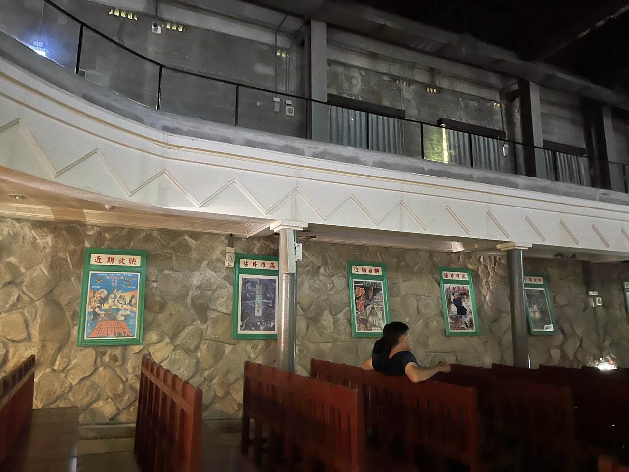 レトロな劇場で、色もポイントになる部分は、昔ながらのグリーンやクリーム色で塗られていて素敵なデザインでした。昔の貴重な娯楽だったんだなと、思いを馳せながら映像をみました。日本統治時代からの流れを知れました。
