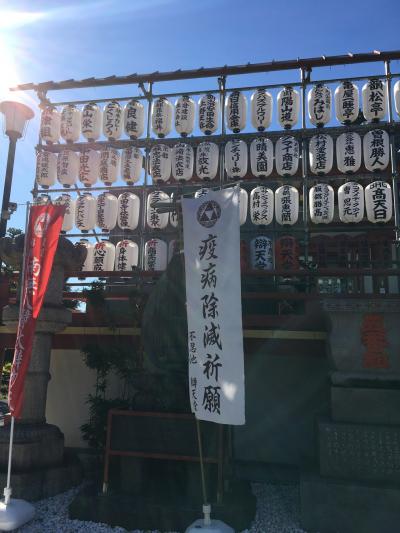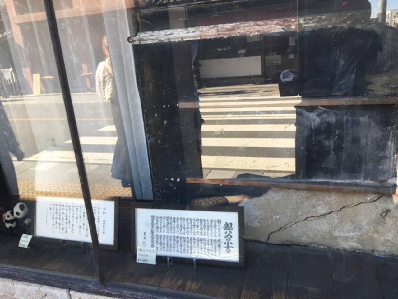 真ん中辺にくると、時の鐘を見上げることができます。おからドーナッツを売っているおとうふやさんや、焼き団子を売っているお店、亀屋の本店などいろんなお店が並んでいました。みそポテトやねぎみそコロッケのお店も買いました。