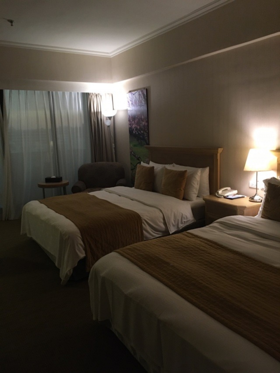 週末に結婚式がひらかれるようで、地下や食事のできる階は、すでにデコレションや会場の飾りつけが始まっていました。料理は、どんどん出てきて、どれも台湾料理でおいしかったです。ロビーのソファ席と、カフェバーみたいなところにも人が結構いました。