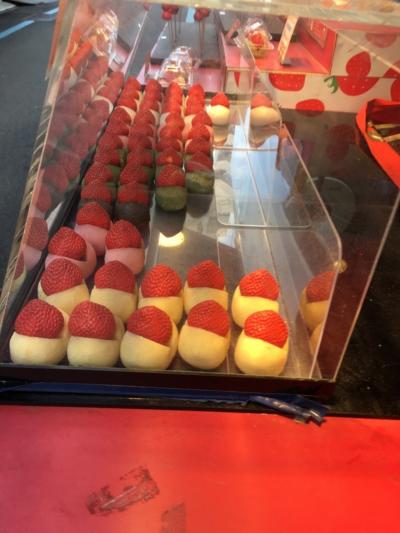 いちごがふんだんに使われていて、とてもかわいいお店でした。いちご飴は500円でした。いちご以外にも夕張メロンの商品もありましたが、やっぱりいちごのが売り場のほとんどを占めていて、いちご大福もおいしかったです