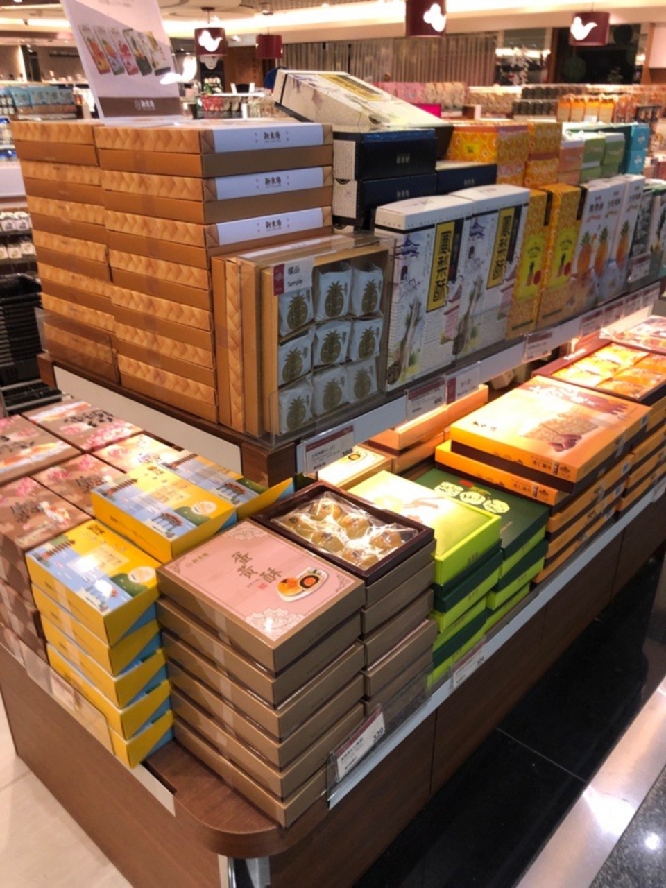 台北市内にもあるお土産屋さんです。パイナップルケーキも売っていました。お餅が入った太陽餅も箱に入って売っていました。牛肉と豚肉のジャーキーも免税で購入することができますが、肉類は日本に入る前に食べたほうがいいです