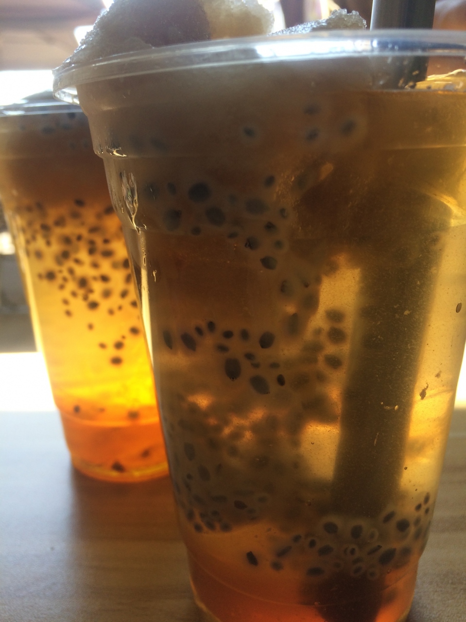 大人気なのがパパイヤ牛乳でした。バナナやアボカド、キウイ、タロイモなんかも牛乳と一緒にミキサーにかけて○○牛乳になっていました。行列になっていて、店員さんもさばいていきたいので、メニュー迷わないようにすると良いです