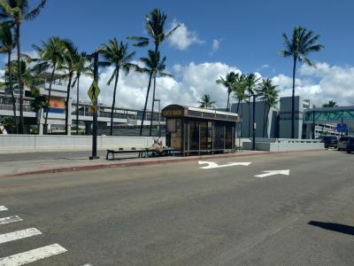 これがバス乗り場。ワイキキまで片道3.5ドル。7ドルをチャージしたホロ...