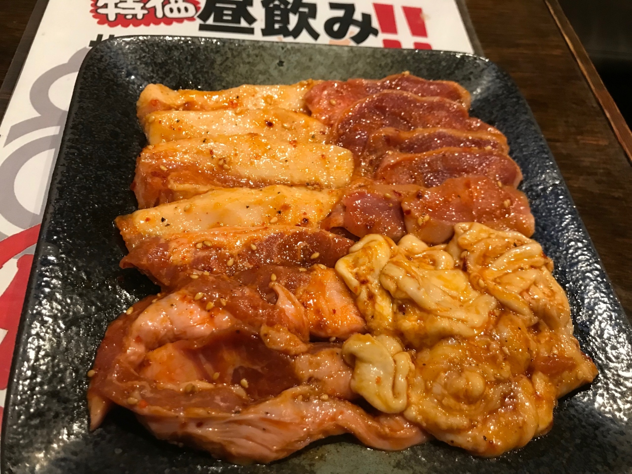 まずはお店の方にお勧めされて目の前での鉄板のホルモン焼き。