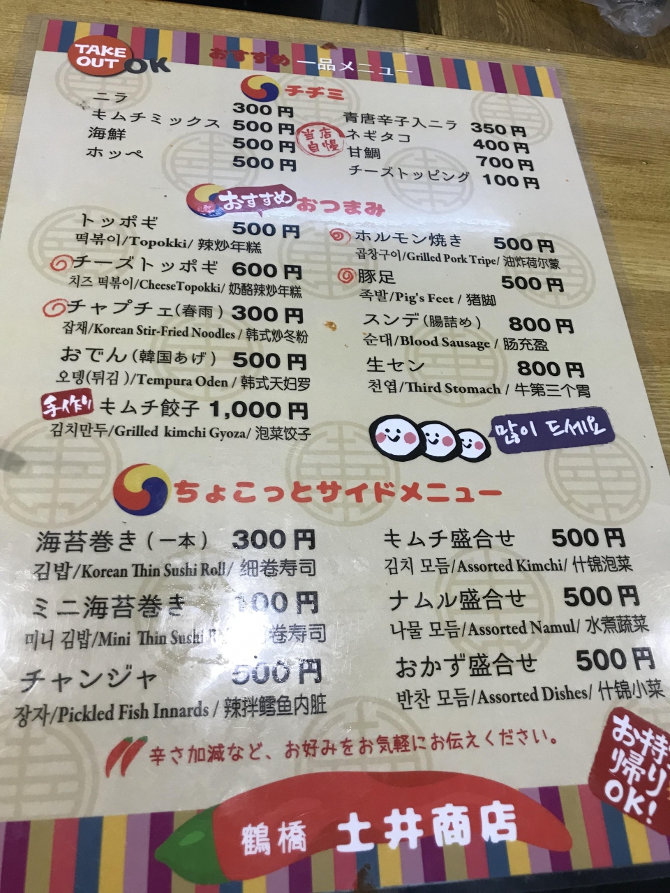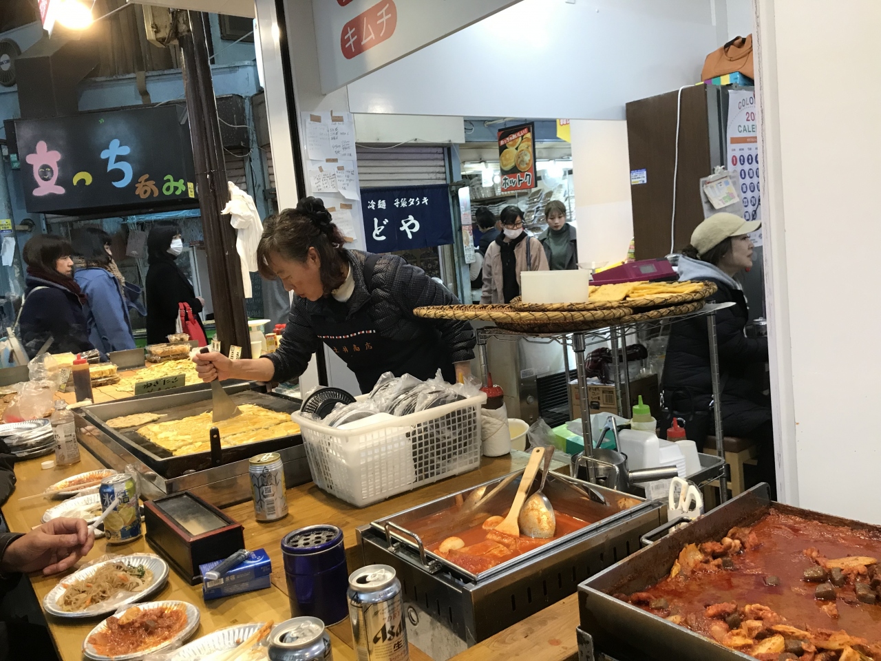 花園で高校ラグビー観戦の帰りに鶴橋で近鉄から地下鉄の乗り換えのため立ち寄りました。