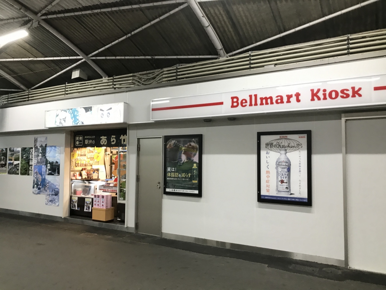 ここはホーム内外両方から購入可能、ベルーマートは改札の外のみ。