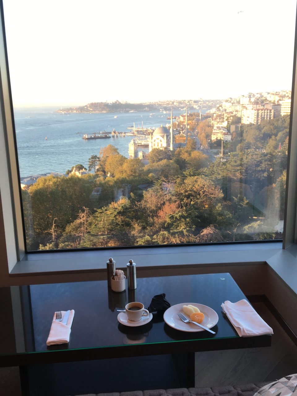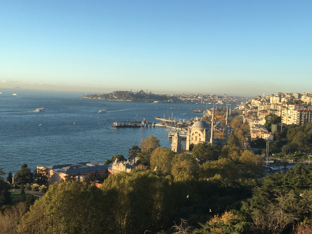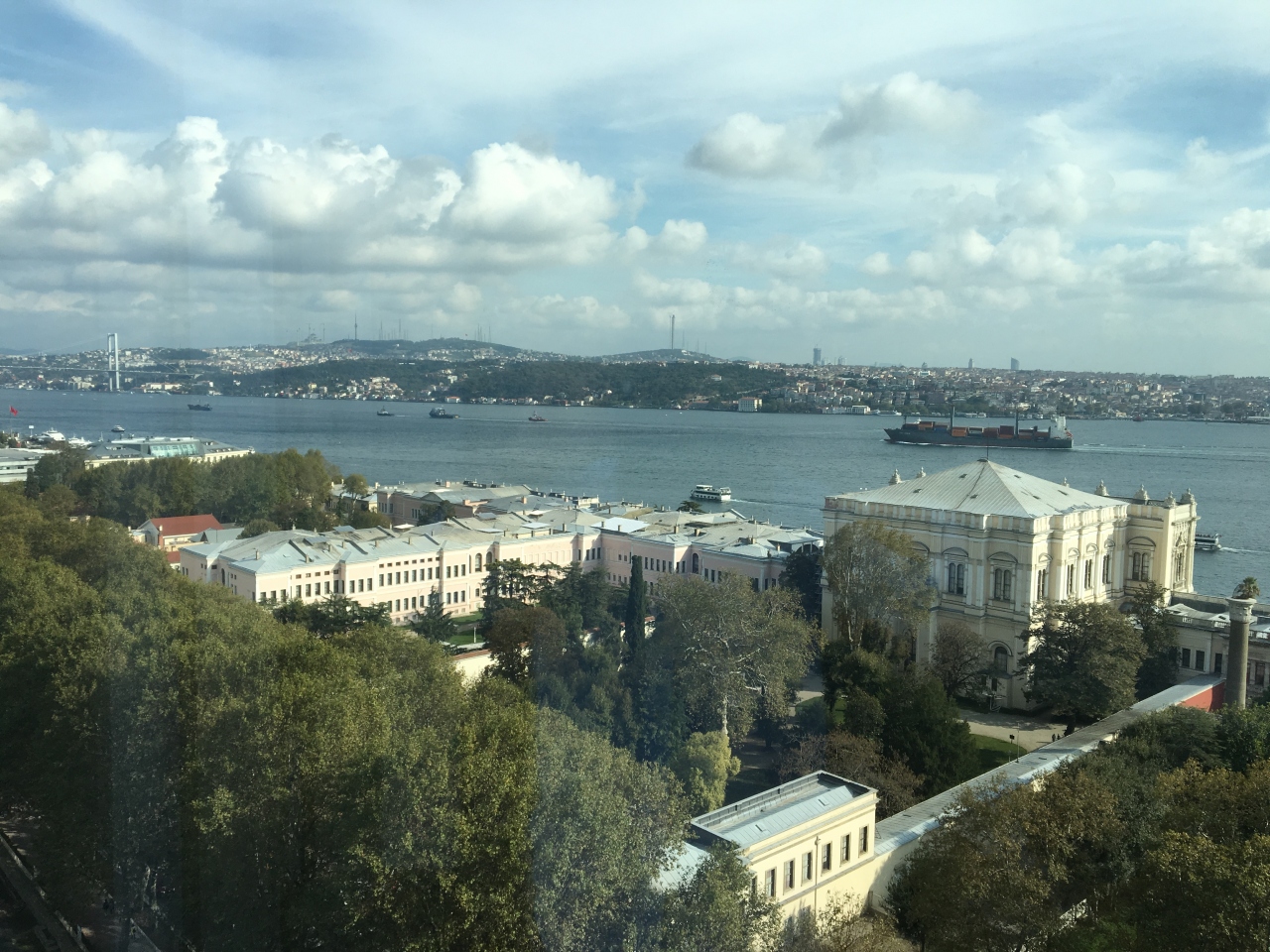 部屋からの眺めが最高で遠くには旧市街のアヤソフィア、ブルーモスクまではっきり見えます。