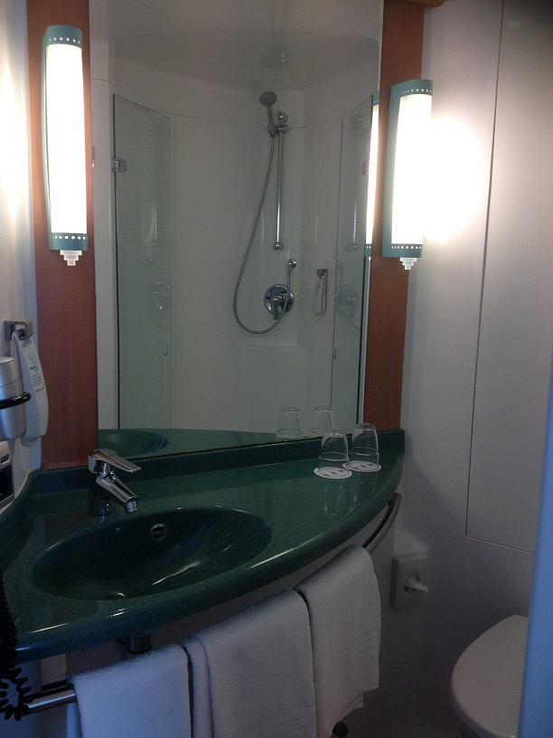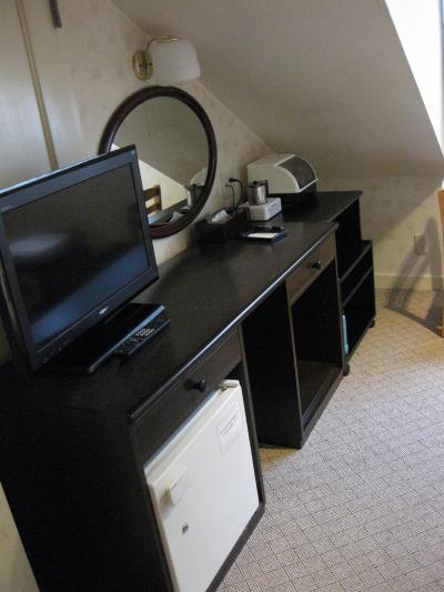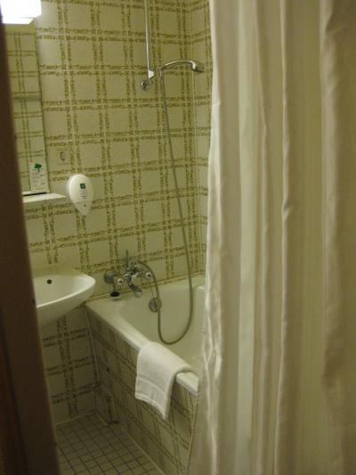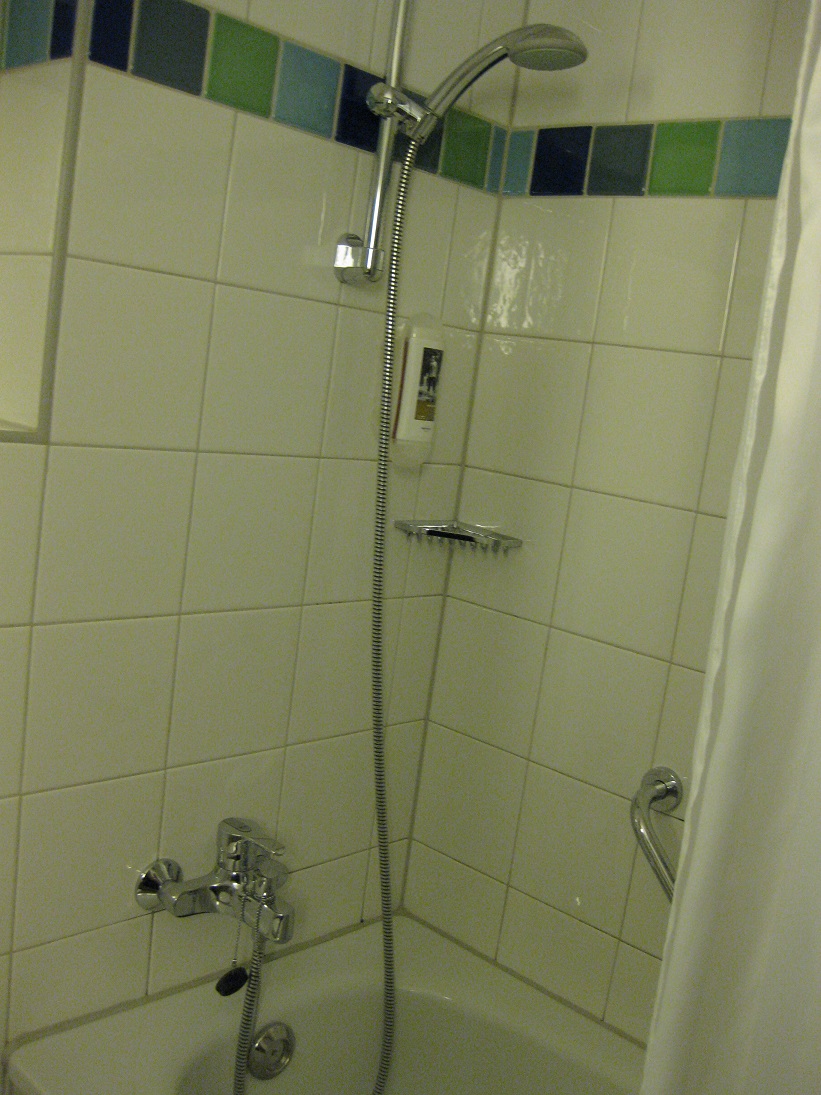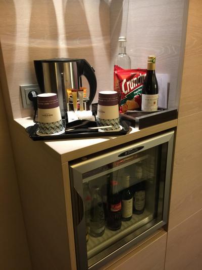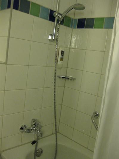 シャワーはバスタブ付、部屋はひとりには充分な大きさで冷蔵庫、湯沸かしポットもありました。
