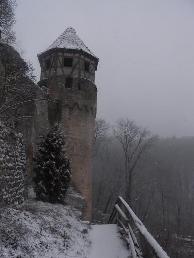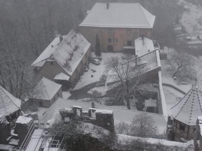 翌朝。雪がまた積もってました。これはこれできれいなんですが、寒い。