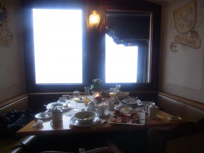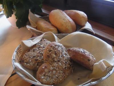 散歩のあとの朝食のおいしいこと!そしてやはりここも私たちしか宿泊客が居...