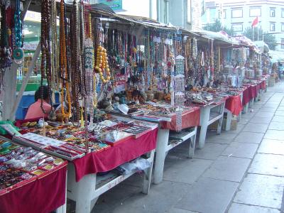 バルコル(八角街)では衣類、仏具、アクセサリー、民芸、日用雑貨等を扱う店が集まっており見るだけで楽しいですが、買うときは根負けせずに値切ること、また雑な作りの物もあるので、よく商品を手にとって見ることが大事です。それから現地には貧しい人も多くいるので、盗難に遭わないためにもバッグ、ショルダー等は身体の前で持つ事が大切です。