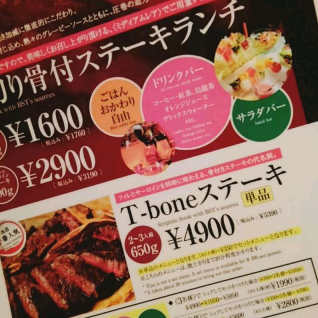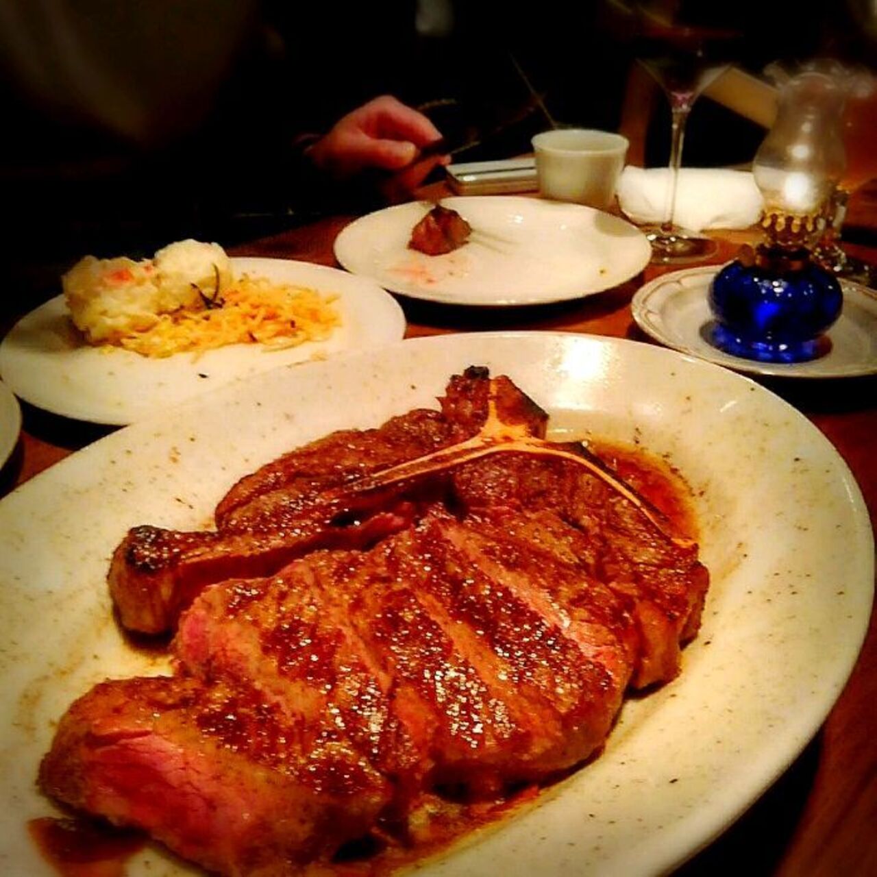 Tボーンステーキは赤身のアンガス牛。脂が少なく食べやすい。