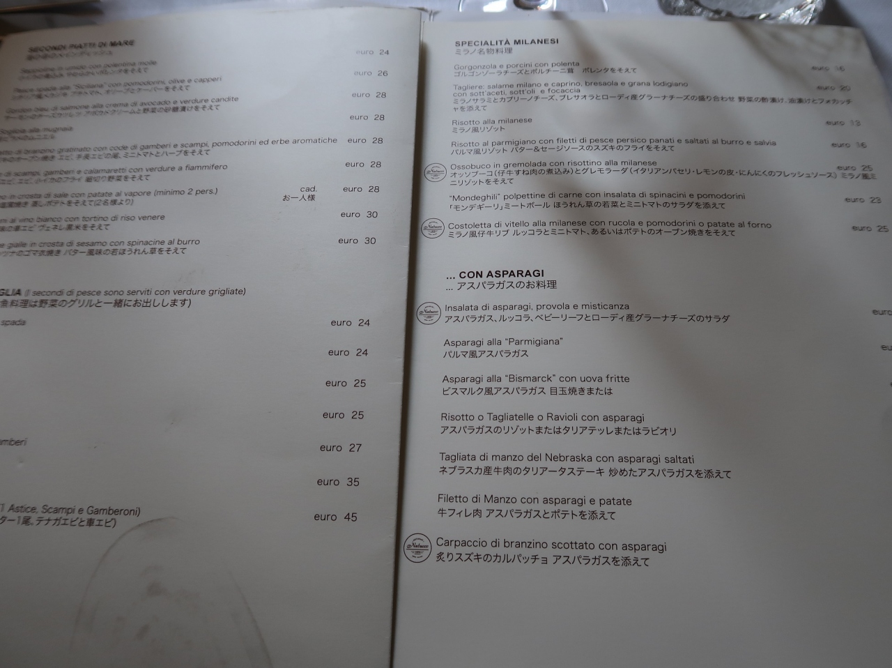 - ちょっと高めなのは、ミラノだけに仕方がないようだ