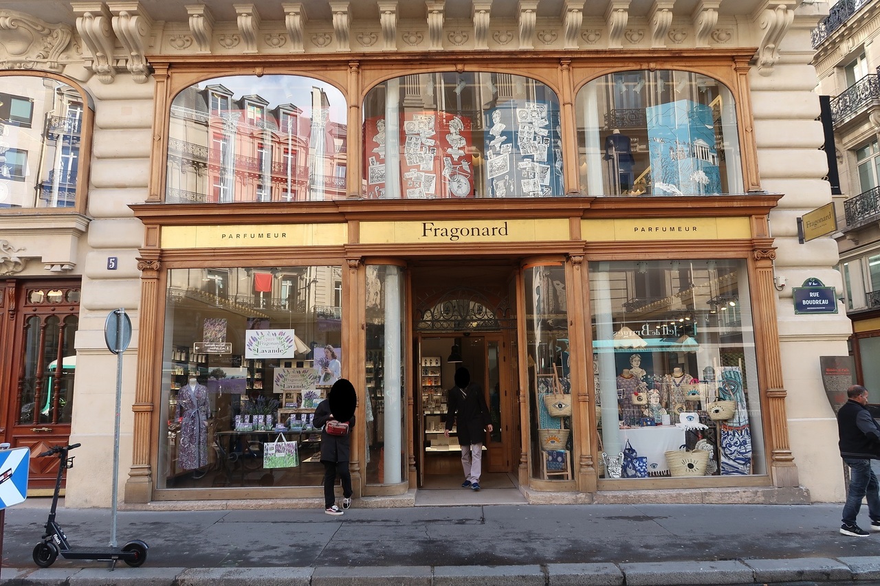 フラゴナール:Fragonard は、フランスの大手の総合香水メーカー。1926年に香水の聖地グラースで創業し、今でも本社がある。パリ店は、優雅な雰囲気と、女性用中心とはいえ、香水や石けんなどの豊富な品揃えが観光客に嬉しいお店だ。接客は基本的にていねい。隣にPRを兼ねたフラゴナール香水博物館があり、日本人ツアーで寄った方も少なくないようだ。現在、客筋の主流は、我らと同じくブランド大好きの中国人。パリのオペラの裏手に、店舗と博物館があるので、オペラ周辺に宿泊すると、気軽に寄れて便利。外部情報によると2007年に日本の店舗は閉店だが、むべなるかな。セレブなお方らは、現地往復や通販でしっかり固定客になっていると思う。私の印象では、こういう香水類は、多少高めでも、パリ観光で興奮している勢いで買うもので、なかなか普段の日常で使い続けられるものではない。我が家のマダムも、ちゃんと同じ轍を踏んでいて、帰国直後の興奮がさめると香水の使用頻度も激減。パリやフランスの思い出を香りに託してショッピング程度が、いちばん楽しいフラゴナール体験だと思う。ビンや箱、ショッピングバックのデザインもエレガントで、パリ観光の思い出にぴったり。