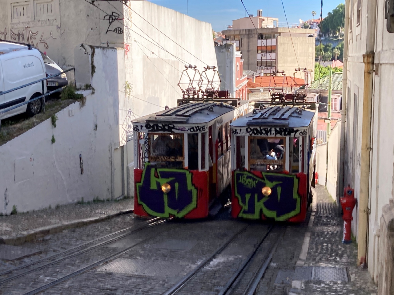 リスボンのケーブルカー(アソンスール)は、観光アトラクションなので、お客さんがそこそこいるときに、わいわいがやがやしながら30分待ちで利用しましょう。早朝や深夜に行って待ち時間なしで飛び乗っても、乗車体験はできますが、リスボン気分は出ないと思います。観光なのですから、そこそこムードがあることも大切です。時には、むっつりのニッポン人に話しかけて無視される悲哀もあるでしょうが、美形の割にはまじめで愛想よく、ニッポン旅行した話で盛り上がるガイジンと旅の楽しみを分かちあえるケースもあります。