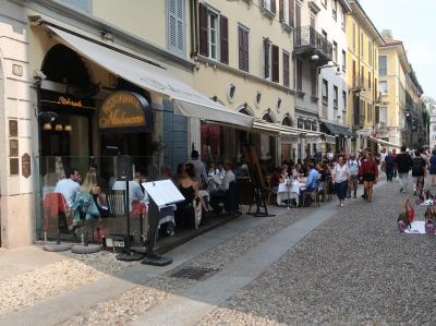 Via Fiori Chiari:フィオーリ・キアリ通りは、ますます洗練度と観光地化度を高めていて、立地と街の雰囲気は申し分なし。テラスか窓際席から、そぞろ歩きの観光客やミラネーゼを見ると目の保養になる。その日は、期待の日本人客はなく、同胞からの人気度がチェックできず残念。