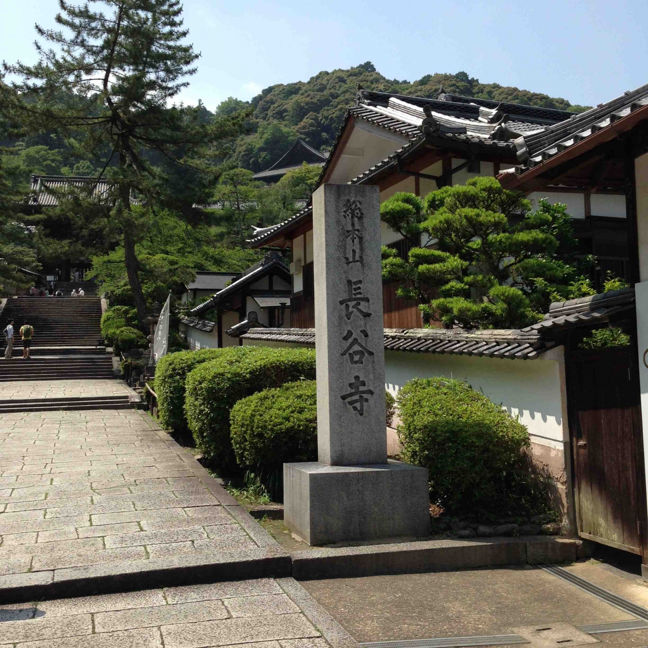 参道にある有料駐車場に車を停め、お土産屋さんのならぶ参道を登って行くと、ようやく総本山、長谷寺の石柱にたどり着く。ここまででも、けっこうな距離があるが、ここからが本番。300段以上ある、屋根付きの回廊型の階段を登らないといけない。ただ、登りきり、本堂の舞台から眺められる景色は、めちゃくちゃ気持ちがいいですよ。