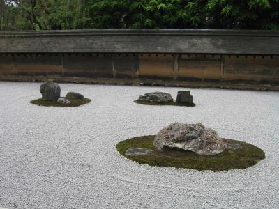 白い小石と大きな石で表現された庭は、なぜか落ち着く。この独特の世界観は、誰がどのような思いで作ったのだろうか。緑も水もない、モノトーンの世界ではあるが、どこから眺めていても風情を感じるし、眺めれば眺めるほど、暖かさまで感じられてくるから不思議だ。だから、多くの人が見にくるんだろうな。