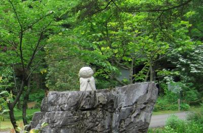 大きな門をくぐって中に入っていくと、庭をはさんで正面、奥の方が本堂、右手側に資料館のようなものがあった。資料館には上杉謙信公のものや、徳川(江戸)時代のものが多く展示されていた。庭はこじんまりとしていたが、どこか品のある感じで、梵鐘やかわいらしい石像などがあった。