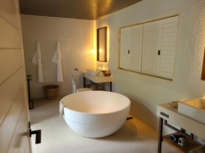 2020年2月開業のホテルは2/3がプール付きビラタイプの部屋になっており、私たちもビラタイプの部屋を利用しました。部屋の広さ・基本的な設備は十分満足できるレベルでしたが、やはり特筆すべきは部屋専用のプールだと思います。幅12mは十分な大きさでした。食事は朝食だけの利用でしたが、クオリティは高かったと思います。難点はホテルの周りにお店など何もないことですが、裏を返せばそれがこのホテルの良さとも言えると思います。ベタな言い方になりますが、「まさに一度は泊まってみたいホテル!」だったと思います。