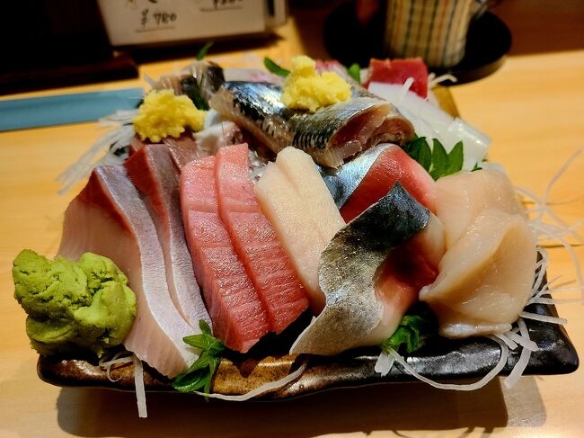 当初、盛岡でのディナーについてはメジャーな冷麺の店や寿司屋やジンギスカンなどを候補に挙げていましたが、リサーチの結果、評判も良くネット予約も可能だったこちらに決定。店先の貼り紙にあるように、刺身盛り合わせを目当てにやって来たので真っ先にオーダー。生牡蠣で間を繋いでいると、程なくして刺身盛り合わせが到着。値段は非表示でしたが、総合計から逆算すると1人前2,000円程度と推測、コスパも味も抜群でした。その他、おススメの焼魚(穴子)などと地酒を頂くと、あっという間に2時間近くになったので退店しました。2名で11,000円程度で満足度は極めて高く、再訪したいお店がまた一つ増えることになりました。