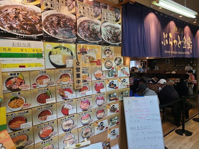 春休み期間の平日、ランチ時に訪問しました。初訪問でしたが目当ては有名店での海鮮丼で買い物はプラスアルファ。建物敷地はそれほど広くはありませんが密集しているためか、ランチを目当ての多くの人で賑わっていました。ランチの方は残念ながら第一希望のお店ではありませんでしたが、まあまあ納得できました。プラスアルファの買物ですが、思ったほど海産物系は多くない印象でしたが、当日は帰宅する日だったので生ホッケを購入して持ち帰りました。フワフワのホッケフライはとても美味しかったです。