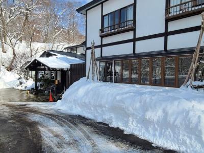 湯めぐり帖を使って日帰り入浴で利用。公式には14時まで日帰り入浴を受け付けていることなっていますが、訪問した日は13時半過ぎに受付を終了していました。入場者を管理しているので、浴室内に人が溢れることはないと思いますが、その分時間に余裕がないと厳しいかもしれません。「銀の湯」の混浴露天風呂は改修中で利用できませんでしたが、「金の湯」の混浴露天風呂は雪と滝が絶景でした。