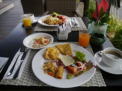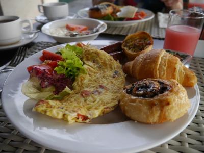 ホテルの朝食(2日目)オムレツ焼いてもらったけど、前日よりしょっぱかっ...