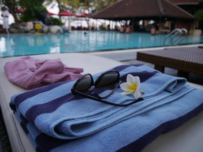 ホテルのプール午後はまた部屋でまったりして、夕方からプールへ。私は泳げ...