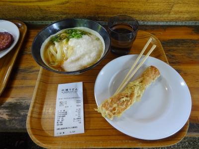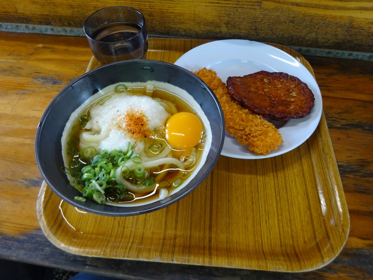入口入った時点で注文聞かれてドギマギ。注文を7・8人分一気に受けてどんどん丼にうどんを盛ります。うどんを受け取り、トッピングの天ぷらを取って会計です。コロナ下なので(普段もなのかしら?)天ぷらは自分が食べる割りばしで取ってお皿に乗せます。さんざん悩んで私は有名な通称『かまたまやま』釜上げ玉子山かけうどん小350円にちくわ120円です。好みの量の付け出しを掛けて頂きます。すっごく美味しいです。小と言えども1玉有るし、こしが有るので満腹感が有ります。暑いけど、うどんつゆがタップリの商品ではないので何とかなりました。やっぱり、うどん県は凄いです!- 旅行時期