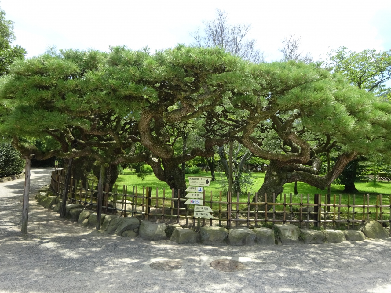 人の姿が見受けられない北門から13時少し前に入場。池の向こうにビルが見えて高松の街がすぐそこなのが分かります。暑さのせいかコロナウィルスのせいか、ちらほらとしか人を見かけません。松は本数も有るし捻じれ方も凄いです。日陰は良いんですが日向はじりじりと陽が照り付けて暑い。水連や菖蒲など花も色々ありましたね。でも今が盛りって感じのものは見られませんでした。夏は緑を楽しむってことですね。殿様のために庭に滝まで作ってしまうんですね。昔の殿様の権力で現代人は素晴らしい庭園を堪能できるんですが複雑な気分…しかし癒されました。