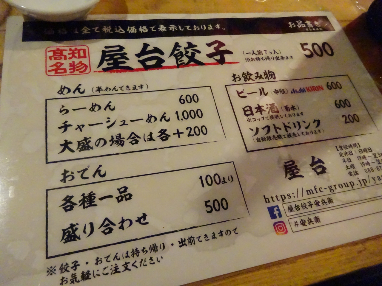 高知名物屋台餃子を食べたい!と連れの希望で行きました。さすが人気店、お店の前には長い列が。中々順番は来ない。1時間待ってようやく席に。迷いもなく餃子2人前とビール。大きめの餃子が外側パリッと中から肉と野菜の旨味がじゅわっと出てくる。今まで食べた餃子とは違う美味しさ。しっかり2人前が簡単に食べられた。おでんも味が染みて美味しかったです。