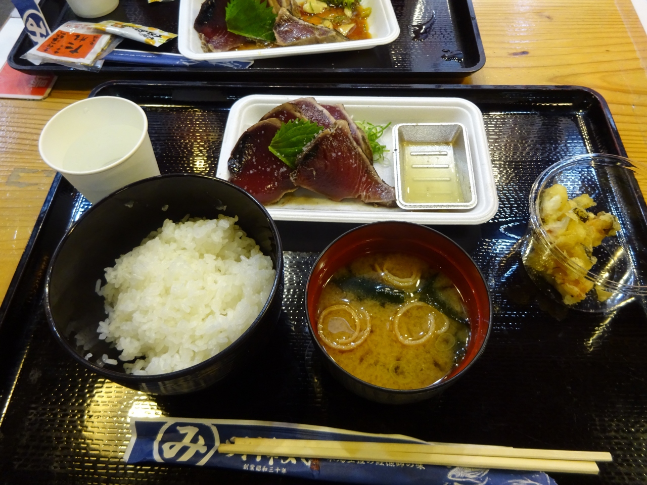 ひろめ市場にやって来たのは2時過ぎで昼時は過ぎているのに人・人・人ですね。鰹のたたきが食べたいという連れの要望で有名な『明神丸』さんに並びます。目の前で藁焼きしてます。炎がボーっと上がるとテンションも上がっちゃいますよ。鰹は臭みも無く美味しかったんだけど、うつぼの天ぷらは注文しなくても良かったかな。決して不味いわけではないけど、冷たいから脂っこい。たれ焼きより塩の方が滅多に食べられないのでお勧めですね。
