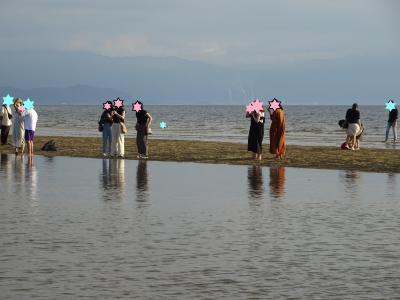 日程と時間は有っていたはずだったんですが風が出てきてしまいました。風が吹くと水面を揺らしてウユニ塩湖のようにはなりません。しかも日没と干潮のかげんが上手く合わないと駄目なようです。この日は有っていたはずなんですが風はその時の運ですからね。じゃらんの「 夕日 絶景 ランキング 」で全国1位に選ばれたことも有るそうです。- 旅行時期