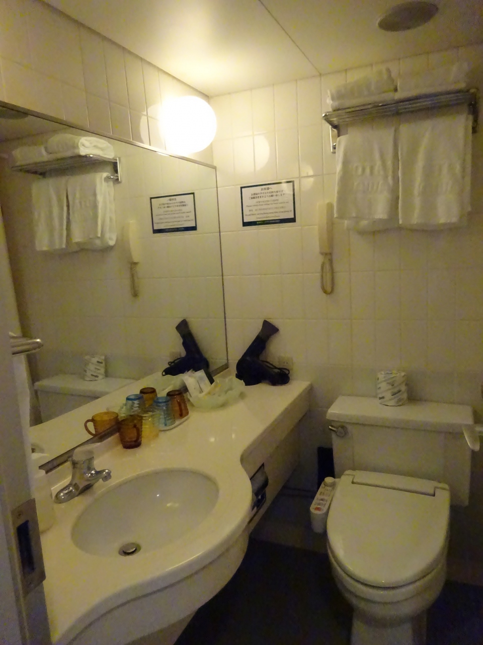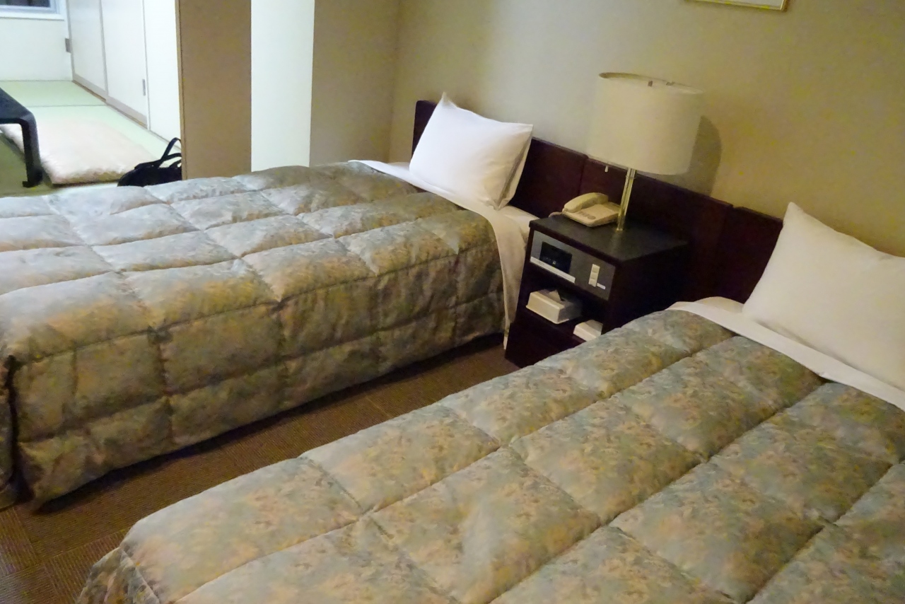 夜に到着したので目を凝らして周りを眺めたが点在する宿泊施設以外は何も見えず林の中に有るホテル。大浴場が有るので部屋のユニットバスは狭かったがお部屋自体は広くて快適だった。食事もツアー代金から察するに十分な量だと思われたが飲み物の種類の無さにビックリ。ビールと日本酒しかなかった。自販機もなく部屋飲みするにはフロントに言ってくれれば食堂からお持ちしますと言われました。