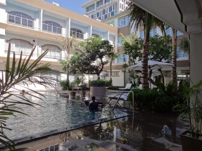 お値段の割には過ごしやすいホテルだと思います。目の前のビーチは泳ぐことはできませんがプールから海が望めるので気持ちが良いです。お部屋はマンションタイプなので広々した感じで備え付けのお水の他に廊下に給水と氷が有ったので便利でした。チェックインは頑なに15時にならないとできないと言われたのがビックリでした。
