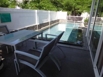 ヴィラは大小様々ですがプール付でキッチンも付いているので別荘気分は満点。難点は階段の上に寝室が有るので荷物を上げるのは大変。