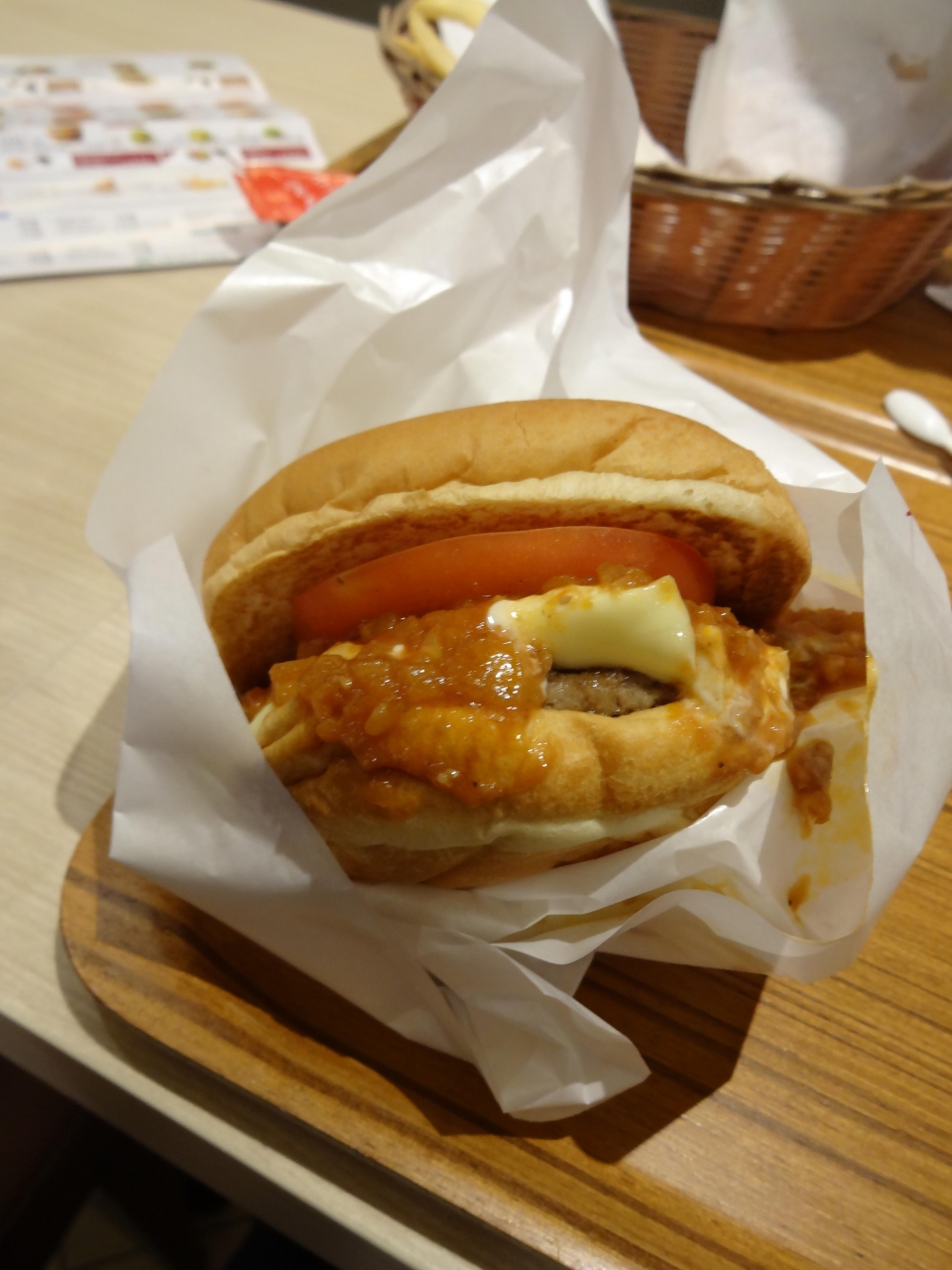 ラッフルズシティのショッピングモールの中で夜ごはんを頂こうとお店探しに9時で終了してるお店が殆どでしょうがないホテルに戻って食べようかと思った時にMOS発見!シンガポールまで来てモスバーガーってと思いましたが注文。日本と同じメニューの指差しで注文できるので楽ちん。ポテトにチリソースは要るかと聞かれてお願いしまーす。シンガポールだねーと話しました。