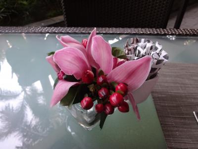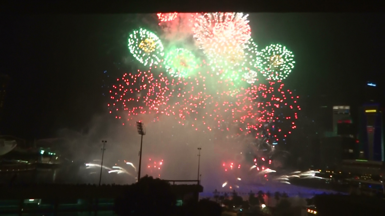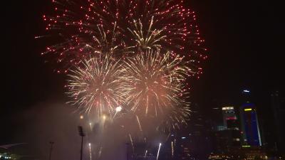 カウントダウンの花火をきちんと見たい思いで予約したマンダリンオリエンタルホテルのお部屋はカウントダウン会場が見える指定の予約。テレビのカウントダウン番組の中継を聞きながら部屋から花火の打ち上げを待ちます。レーザーで白のボールが色とりどりになり花火が正面に見えるお部屋は最高!!