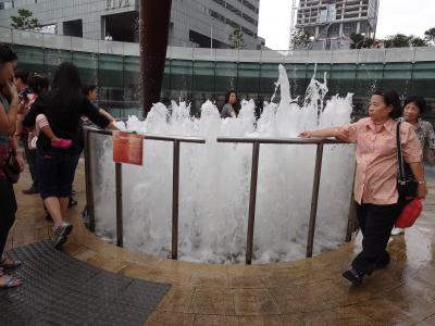 シンガポール2回目にして初めて富の噴水に来ました。サンテックシティーモールの中に入ると噴水は見えるものの入り口が分からずウロウロしてしまいました。無料でしたが入れる時間も決まっているようで下調べもせず行ったのに入れてラッキーです。大噴水の中にある小さな噴水は内側に水が流れ落ちるので富が逃げない事の象徴と言われています。噴水の水に手を触れ、願い事を唱えながら3周すると願いがかなうと言われています。勿論私も願いを込めて回りました