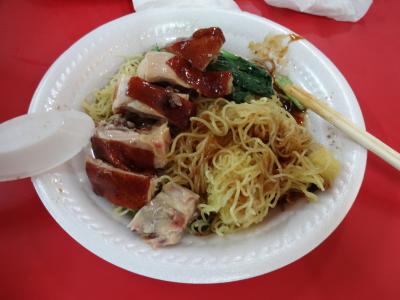 シンガポールナビでお勧めのチキンヌードルを食べるためにやってきましたが沢山のお店の中からお目当てのお店を見つけるには看板に振ってある番号が目印。行列の最後尾に並ぶこと30分位で手に入れたチキンヌードルは、まあまあと言う感じで30分の行列の価値は見出せませんでしたがチキンは美味しかったのでチキンライスのほうが良かったかも