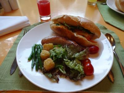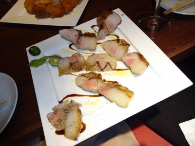 シェラトンにチェックイン後にすぐランチに行きました。ランチのコースは高くても1800円位でホテル内のランチとは思えない格安なお値段。コーナーによって雰囲気もかなり違って見えるレストランです。一番奥のカジュアルな感じの席に案内されましたが解放感があって気持ち良い席でした。チキンの揚げたコースと牛肉の赤ワイン煮のコース、ピザをシェアして食べましたが、どれも美味しかったです。最初のスープは優しい味付けでまさしく母の味といった感じ。メインの牛肉はトロトロ。チキンは表面カリカリ中ジューシーって感じでした。パンにオリーブオイルとソース4種が付いてきてこれまた美味しい。そして閉めのデザートもケーキにルバーブのジャム美味しかった~