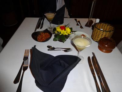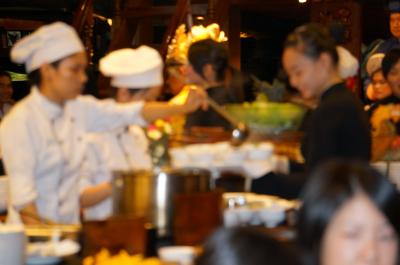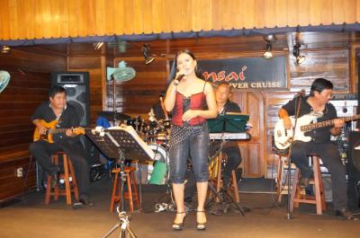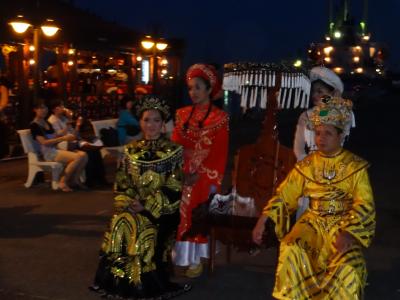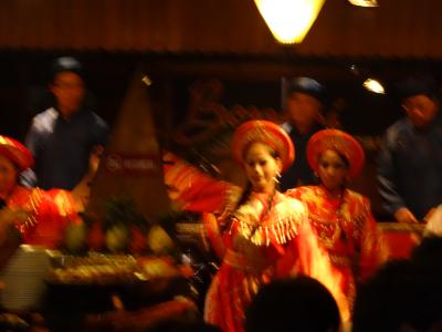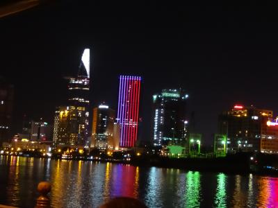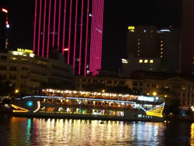 スケッチトラベルで予約してUS$36で参加。19時集合で乗船前に記念撮影ができます。乗船して席に案内されるとシャーベット状のウェルカムドリンクとフランスパンのカナッペが出されます。出港すると船の案内の後、生演奏でベトナム王朝の寸劇が有ってその後ブッフェ式のお食事になります。その場で揚げたりする料理は温かくて味もまあまあと言った感じです。その後も生演奏で色々なダンスが披露されたり、歌手が出てきて最後はダンスタイム的になっていました。川風を受けながら夜景も楽しめて良かったです。