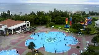 沖縄ならオンザビーチ!と選んだのはこちらでした。ビーチもすぐホテルの中庭にはかわいい花の形のプールと子供用のプール、芝生広場にはエアー遊具が。花が咲いて綺麗な庭には結婚式場も。ご飯もおいしく、居酒屋風のレストランでは、沖縄料理が楽しめます。