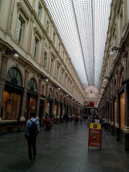 グランプラスの近くにあるヨーロッパ最古のアーケードと言われるだけあって、天井は高くとても美しいアーケードでした。カフェや老舗のチョコレート屋さんが入っていて、どこに入ろうか行きつ戻りつするのも楽しい時間でした。