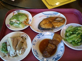 ショーケースににおかずがずらっと並んでいて食べたいものを指さすと一皿づつ盛ってくれます。どれも美味しそうだけど一皿の量が結構多いので全部は食べられなくて残念。