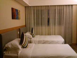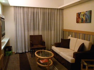 パックツアーの最終目的地「女人街」で解散後、いかに時間を無駄にしない方法を考え、行きついたのが「女人街の近くのホテルに泊まってしまおう」でした。狭くっても大丈夫よー、寝るだけだしぃと思っていたらなんと!部屋をアップグレードしてくれてジュニアスイートでした。2部屋あってゆっくりと部屋でくつろげました。
