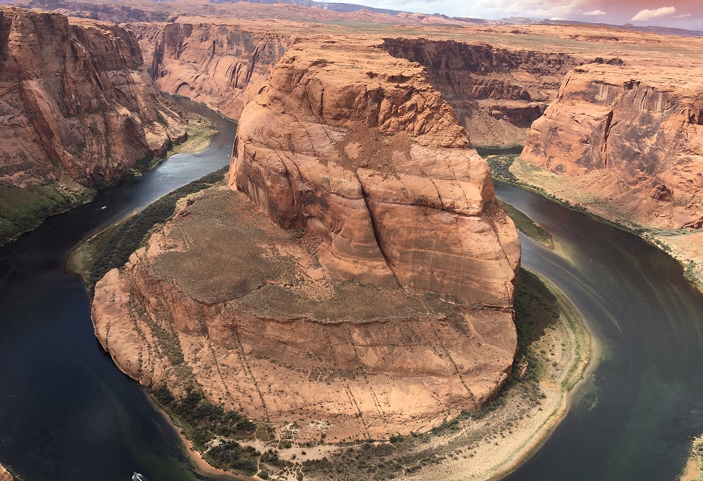 下に流れているコロラド川が蹄鉄(horseshoe)の形に蛇行しています。