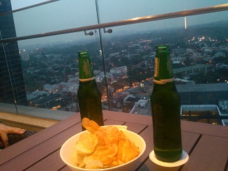 屋上は庭園になっていてジム(マシンが数台だけですが)もありあます。有名な圓山大飯店が見えました。